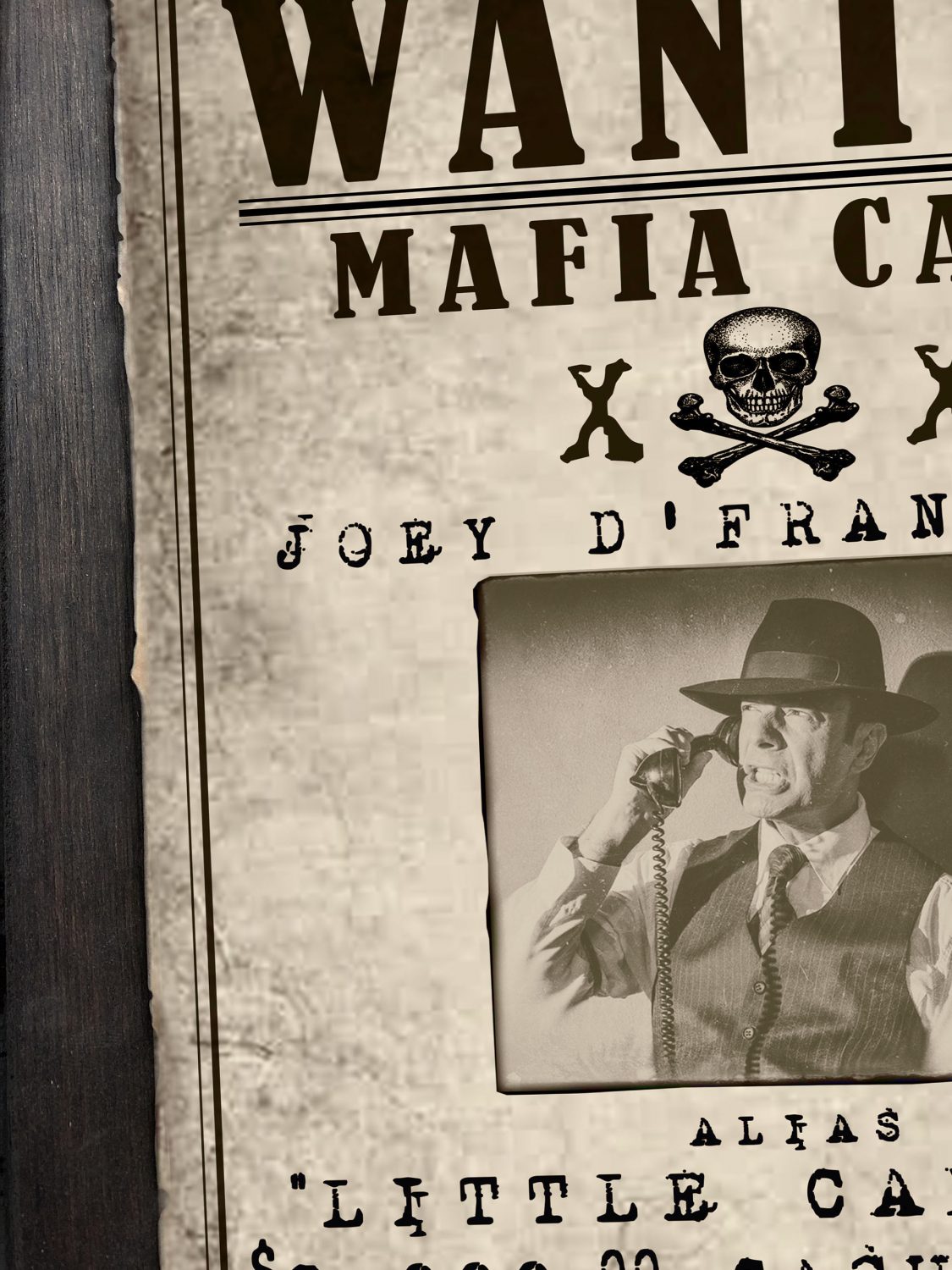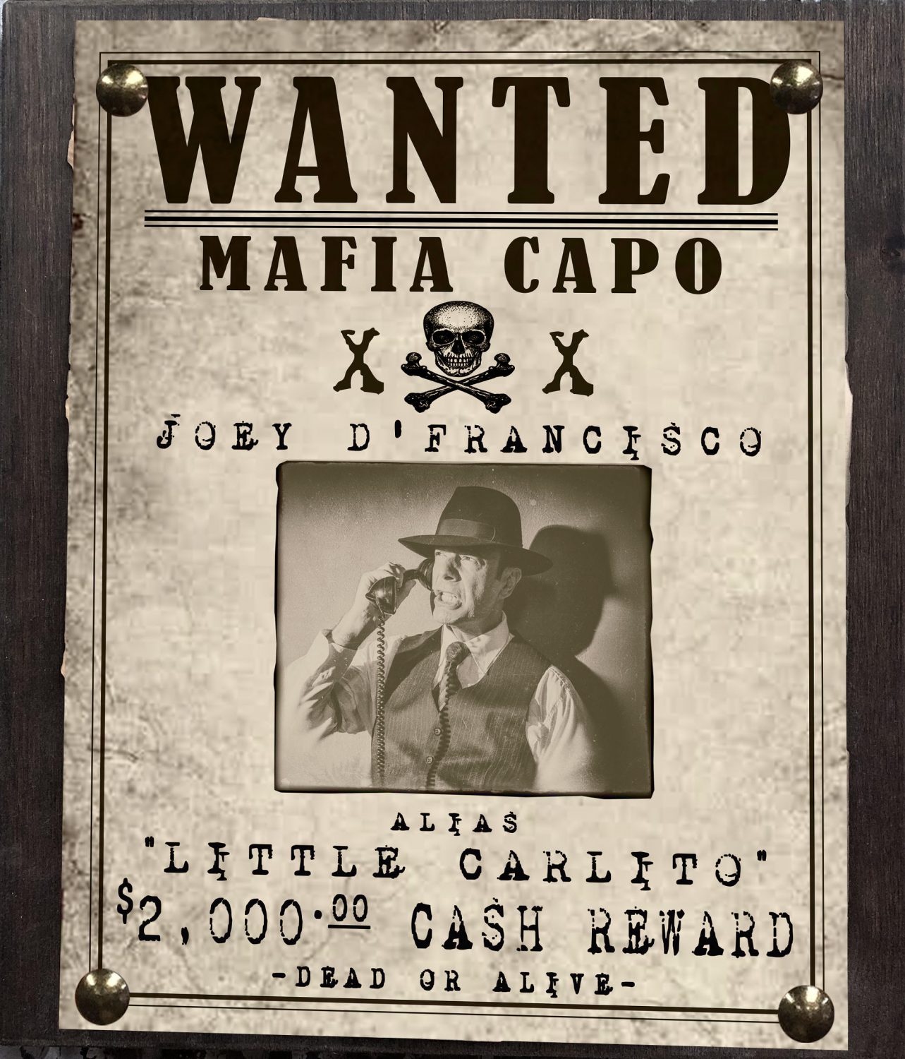 Mafia newspaper style wanted posters feature attitude, style and reward! If you are a fan of mafia lore or old timey decor, this is a must have addition to your decor. This mafia capo wanted old fashion style newspaper print on wood and corrugated steel is the perfect for any old timey themed area.
