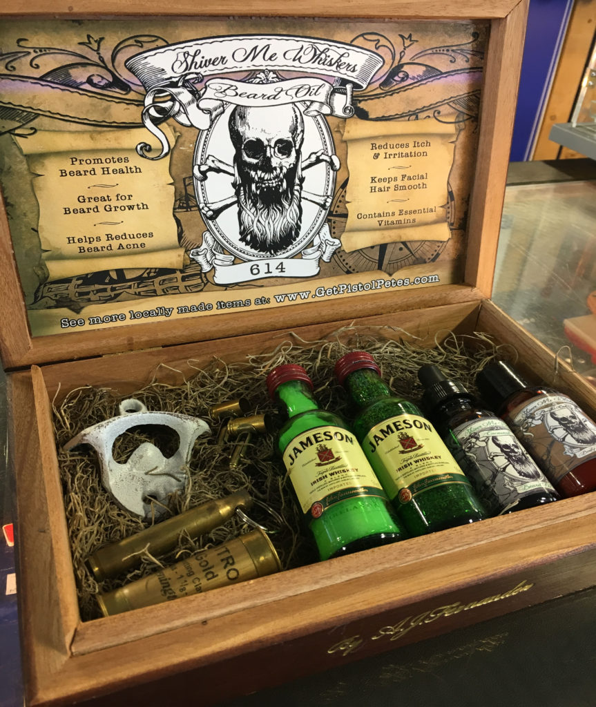 Our gift boxes come with handmade items, natural skin and beard care items, as well as rustic items. Presented in a real cigar box for presentation.