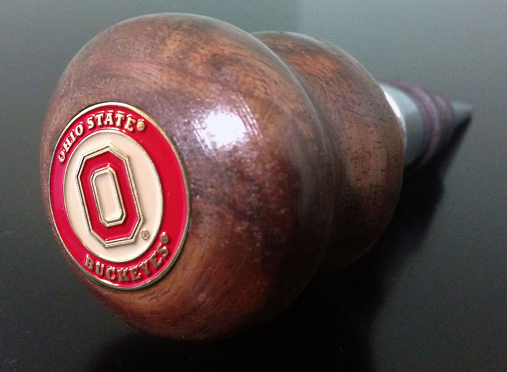 Show your love for the Ohio State Buckeyes! This handmade, hand turned wood bottle stopper is made from unique blends of wood, turned by hand, and finished to last. These wood bottle stoppers make a great functional bar accessory or collectible.