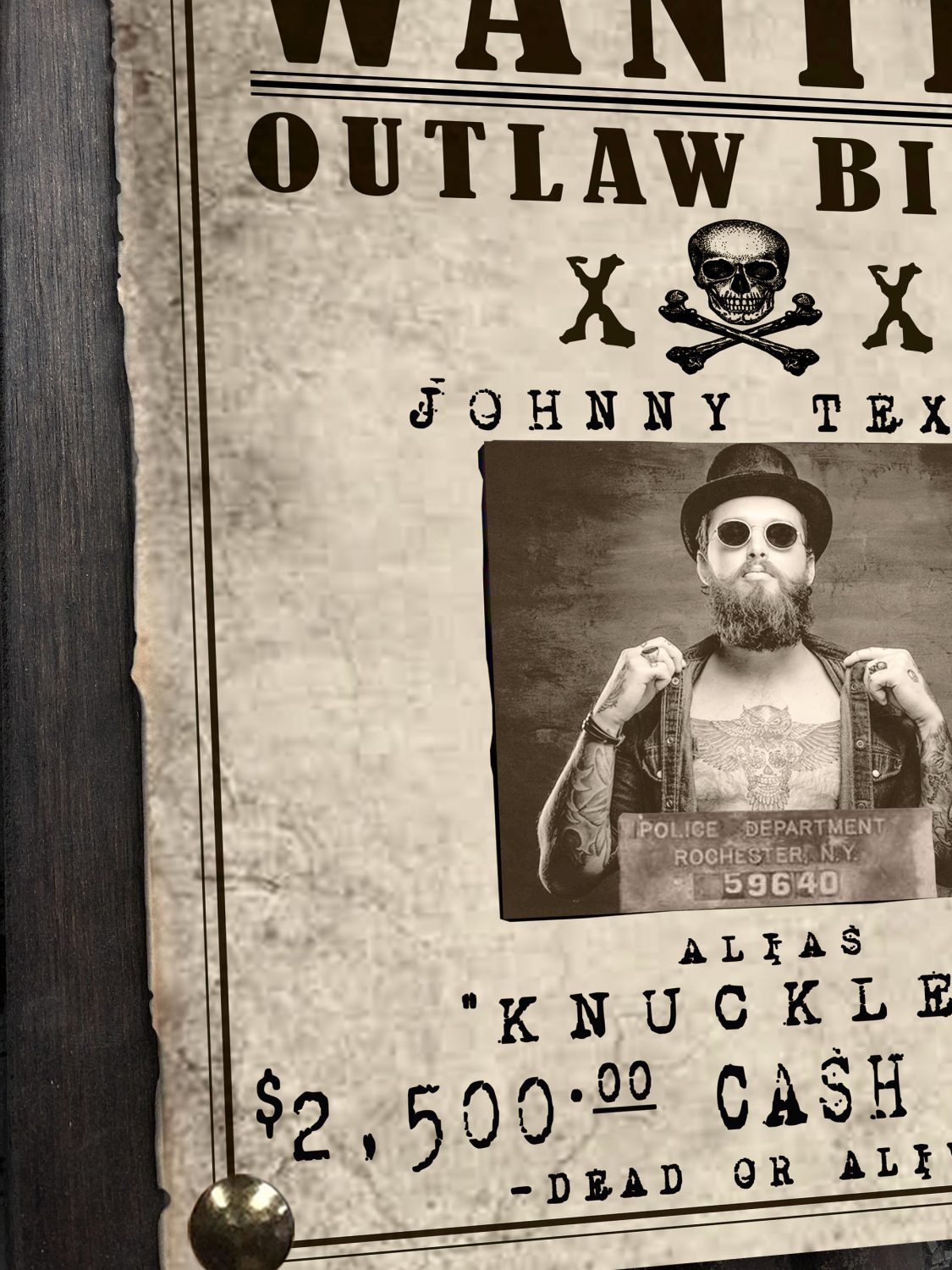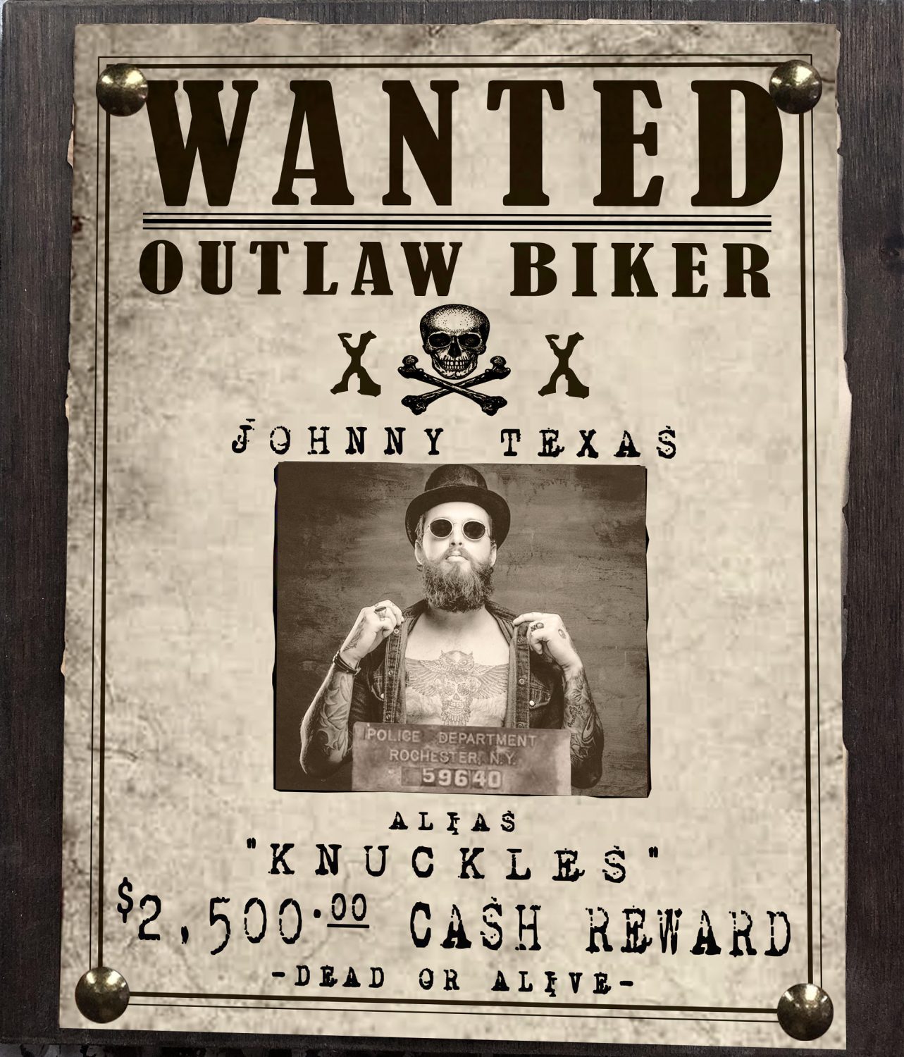 This outlaw biker newspaper print wanted poster on is mounted on wood and corrugated steel and is the perfect addition to your man cave, bar, restaurant, office or living room! Outlaw Biker wanted signs make a great gift to any friend or family member that loves to ride.