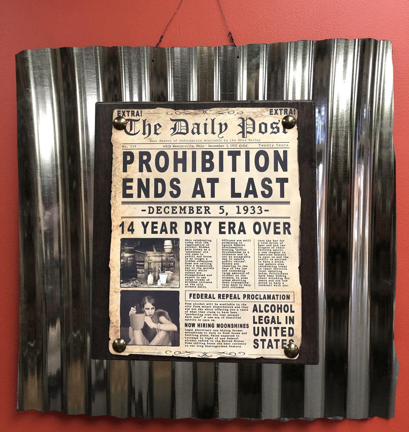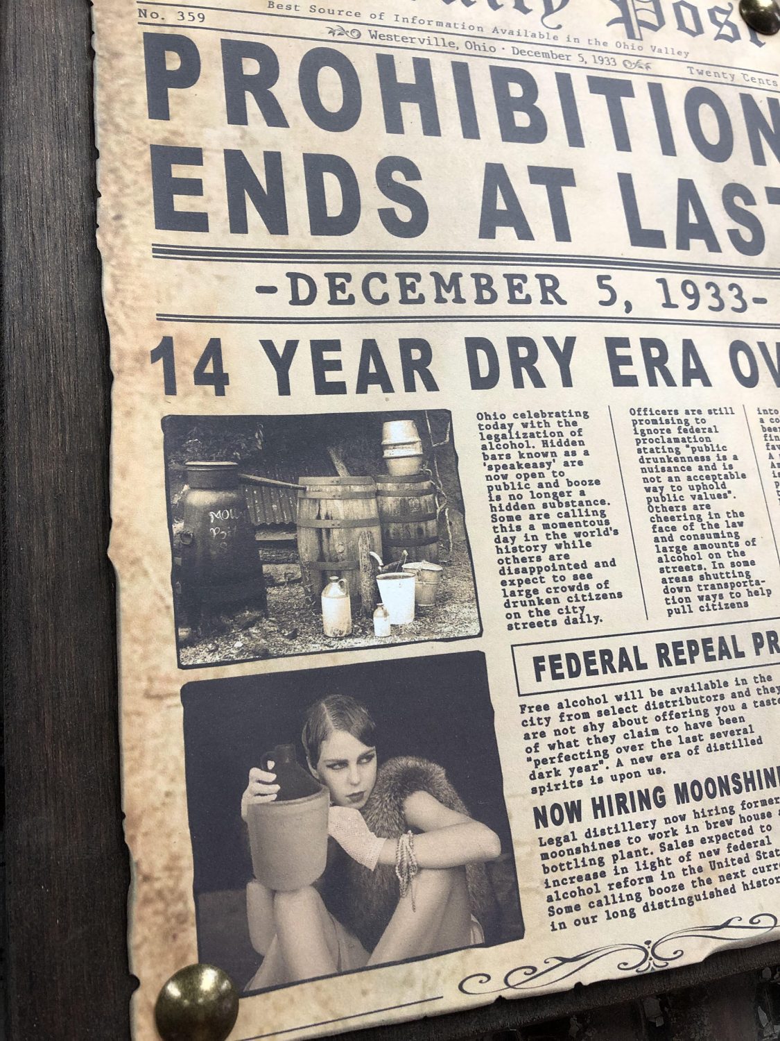 Looking for a great way to decorate a man cave, office, rustic living room or just looking to put a great old timey twist on your favorite space? This Prohibition era style newspaper print on wood and corrugated steel is the perfect addition! This handmade sign is a fun addition to your bar, game room or entertainment space. Made from real wood, real corrugated steel and print created to look like the real deal old time newspaper release!