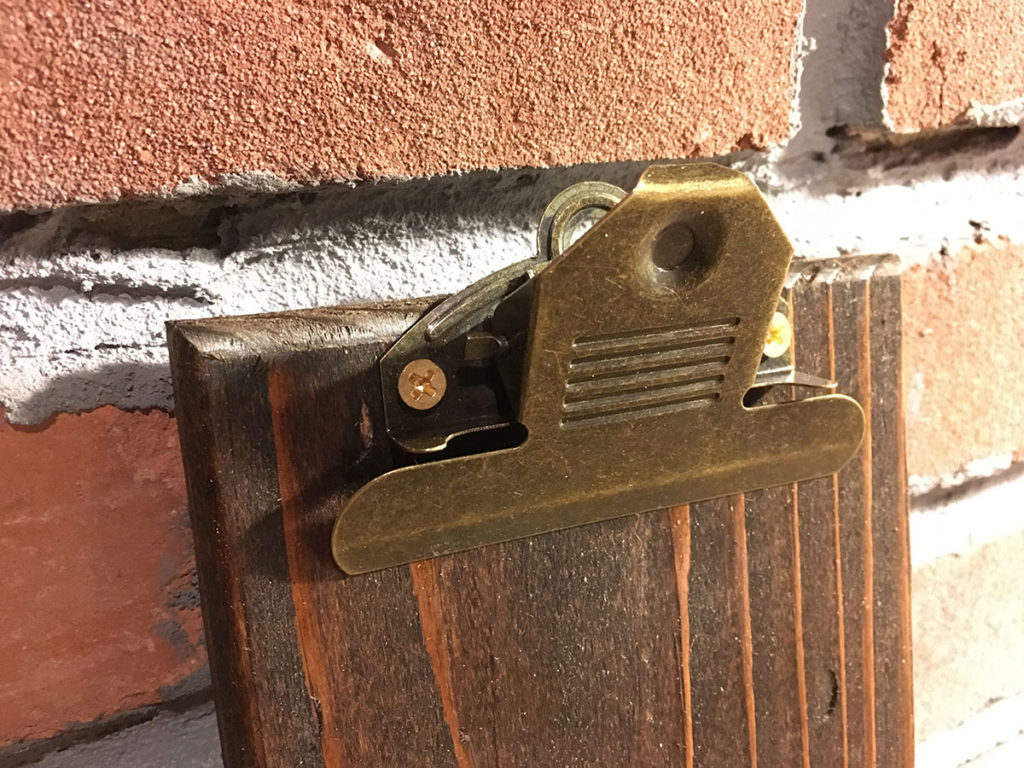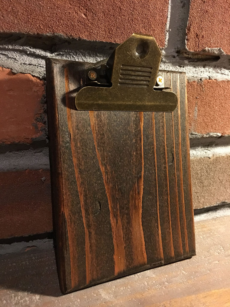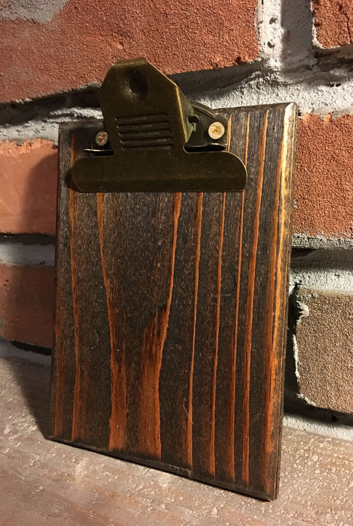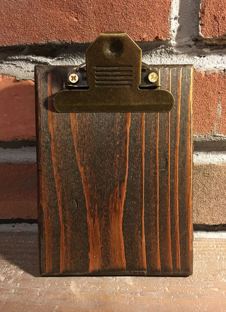 Featuring an old fashion style clipboard clip with hole on the back for hanging up these clipboards.