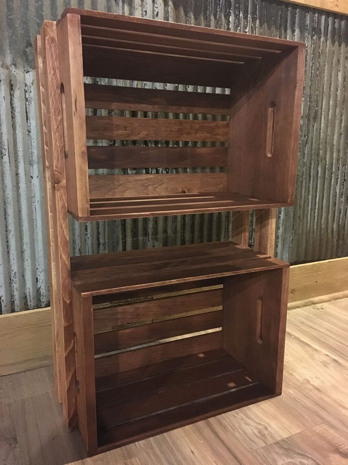 Using our rustic creates we create a unique storage solution that is beautiful and functional for your bathroom wall! Elegantly store towels, toiletries, soaps, display bathroom decor and more. These create shelves can be stained or painted any color you like!