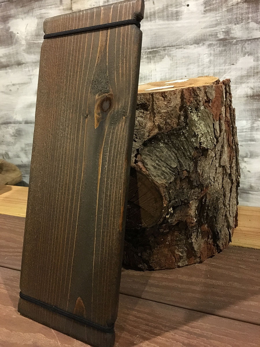 This smaller version of the rustic menu boards with elastic bands. They are perfect for holding your menu to the wood board and make a beautiful presentation. The banded menu boards are great for showcasing restaurant menus, drink menus, promotional materials and more! Easy to hold, great for servers to handle. The rustic, banded menu board has so many awesome uses. They are also durable and lightweight. Made from real wood and hand finished to add that rustic charm.