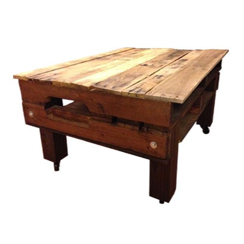 Time for a new coffee table for your living room or man cave? Get the Pistol Pete’s Wood Pallet Coffee Table and wow your guests! Each coffee table is handmade from weathered and aged pallet wood. Each custom coffee table is carefully constructed for strength and durability. With 365 degree rotating casters, your coffee table will be easy to maneuver and navigate. Your coffee table is stained and sealed to your specification! Also includes built-in storage! No more clutter on your coffee table. Place remotes, magazines, books and more in convenient storage shelving below the surface of your table. Each item will vary slightly in wood features and color. We leave that up to mother nature!