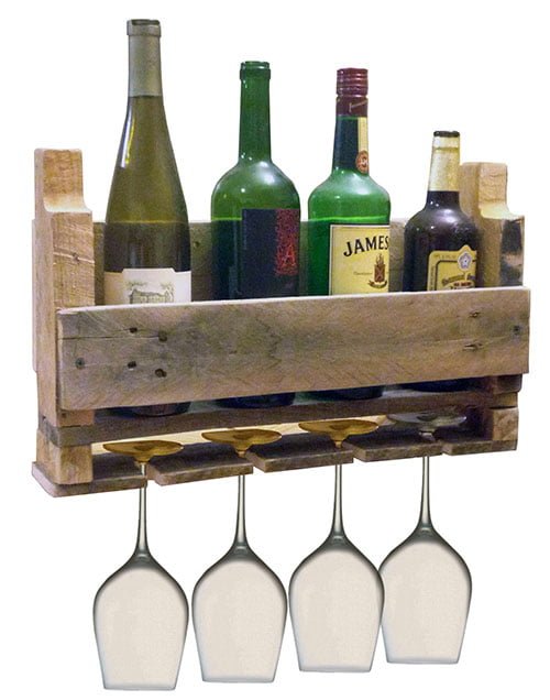 Wood Pallet Wine Rack for Four Bottles and Four Glasses
