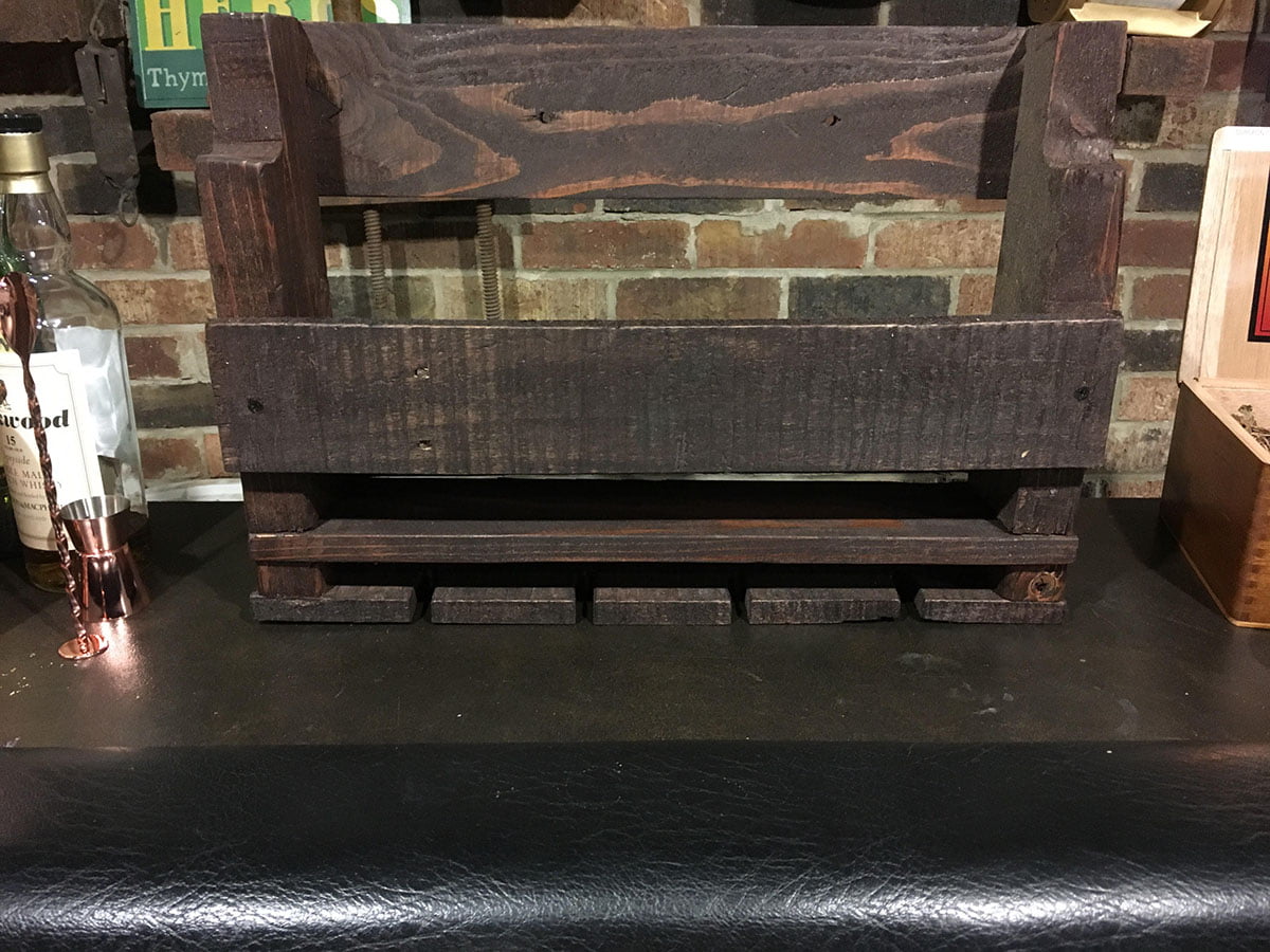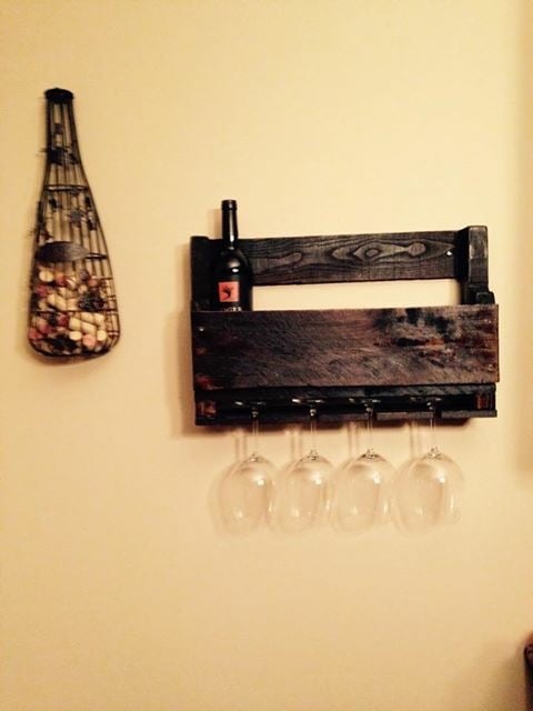 Only have a little wall space, but want to add a rustic wine rack? Get the Pistol Pete’s Pallet Wine Rack that holds four glasses and four wine bottles for your bar, kitchen, basement, garage or any space you want to decorate with a woodland, rustic feel. Each item will vary slightly in wood features and color. We leave that up to mother nature!